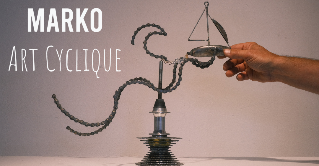 Pièces exclusivement métalliques issues de la récupération de cycles provenant de la «poubelle» de l’Atelier du Poupoupidou (magasin vélo quartier Ste Anne à Nantes).